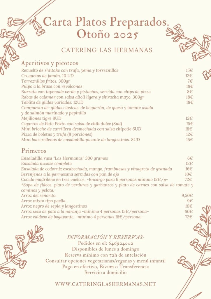 A TENER EN CUENTA. Es muy importante que nos contactes con toda la antelación posible (como mínimo 72h de antelación), porque no todos los fines de semana podemos ofreceros este servicio. Así que, en cuanto tengas idea de que os apetecería encargar al catering, ¡no dejes de decirnos para confirmarte disponibilidad!